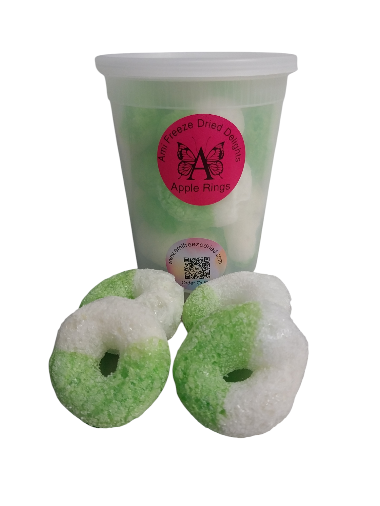 Freeze-Dried Apple Rings boast a delightful, airy crunch that creates a unique and addictive eating experience. These delectable rings feature the sweet and tangy flavor of apple, perfectly preserved through the innovative freeze-drying process. Each bite-sized piece offers a burst of natural apple flavor, with a satisfyingly crisp texture that melts in your mouth. Made and packaged carefully by hand in the USA